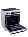 - Cooktop: 4 symmetrical 7.9 inch 2.8 kW high-power cooking zones