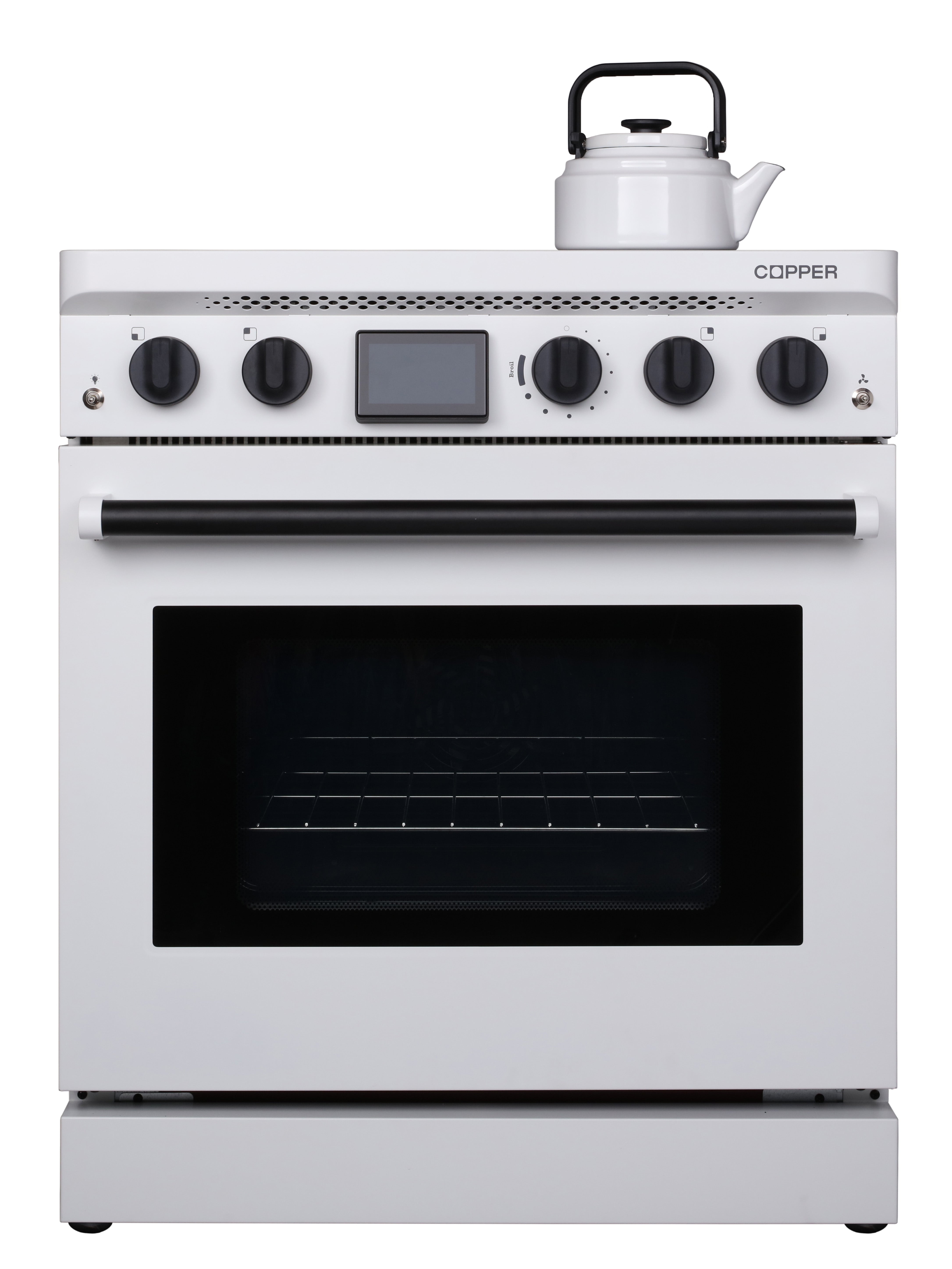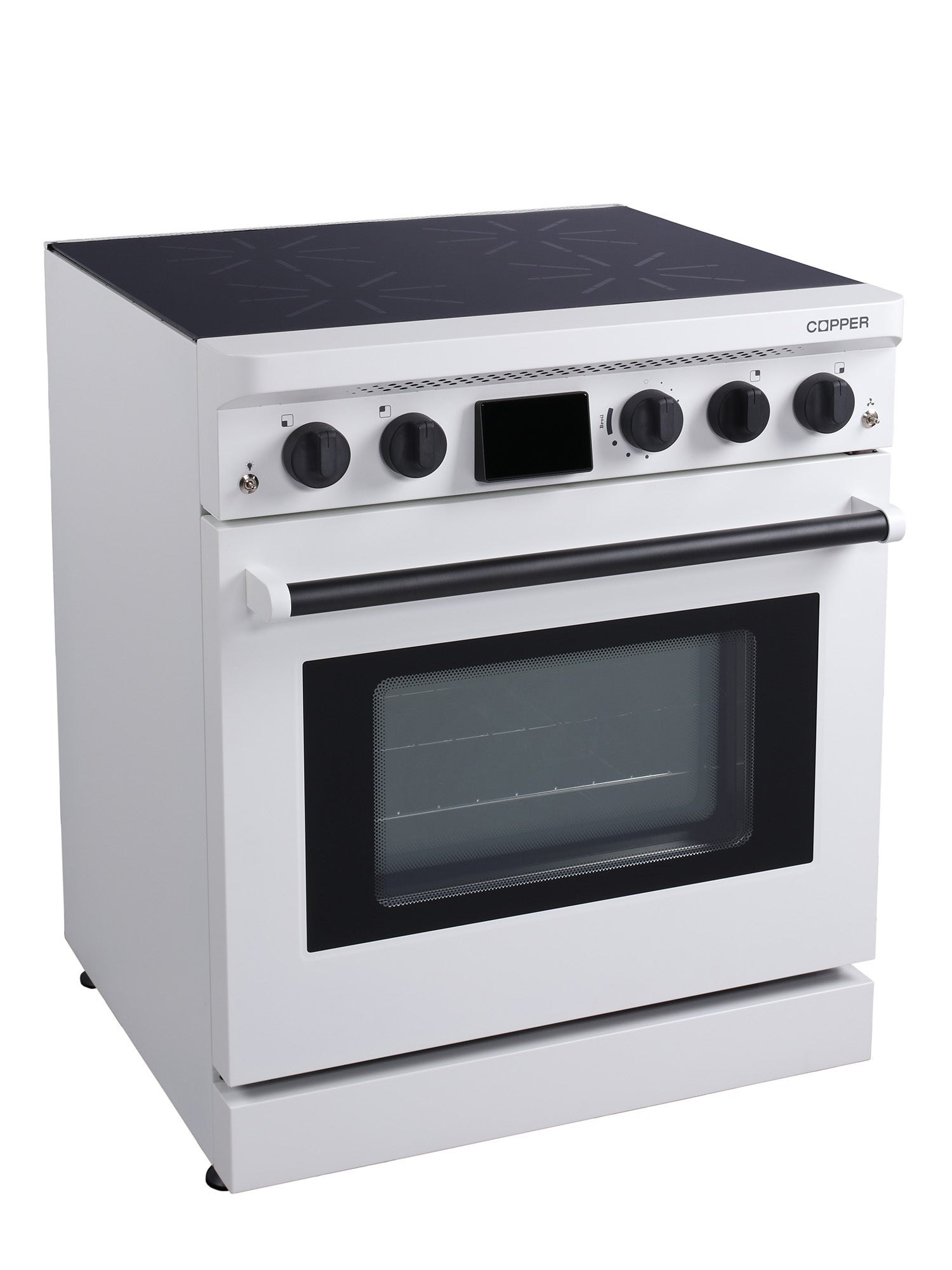 - Cooktop: 4 symmetrical 7.9 inch 2.8 kW high-power cooking zones